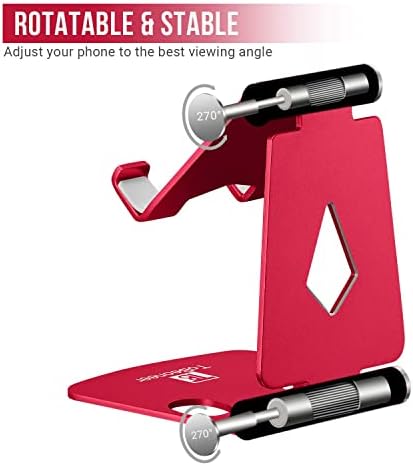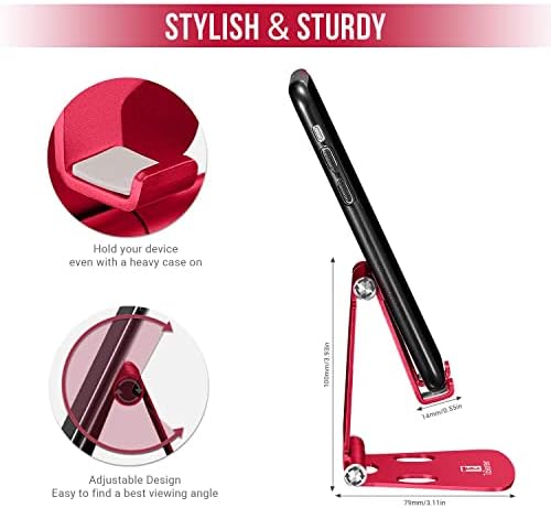Adjustable Cell Phone Stand – ToBeoneer Phone Holder for Desk – Portable Small Size Desktop Dock for iPhone 12 13 11 Pro XR XS X 8 7 6 Plus iPad Mini Samsung Google, Cute Office Home Décor (Red)