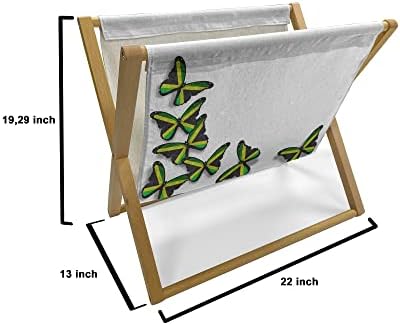 Ambesonne Jamaican Magazine and Book Holder, Buterflies Flag Motifs Caribbean Animal Illustration Rasta Culture Print, Floor Rack Organizer for Office Home and School, 22″x19″, Green Black Yellow