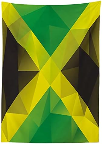 Ambesonne Jamaican Tablecloth, Triangular Polygon Design Abstract Flag Geometric National, Dining Room Kitchen Rectangular Table Cover, 52″ X 70″, Yellow Green