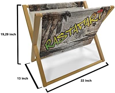 Ambesonne Rasta Magazine and Book Holder, Jamaican Reggae Music Inspired Rastafari Street Graffiti Image, Floor Rack Accent Living Room Office and School, 22″ x 19″, Pale Green Yellow