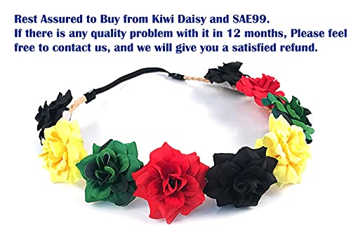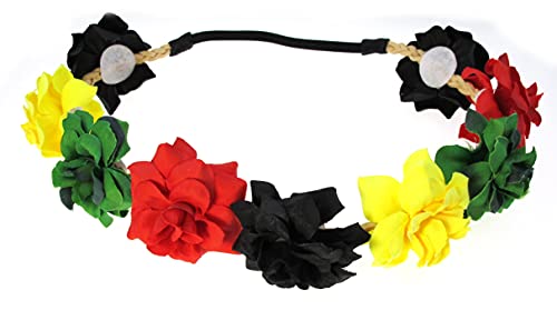 Best Wing “Black Red Green Yellow Rasta” Floral Flower Crown Stretch Headband, Black, Red, Green, Yellow, One Size