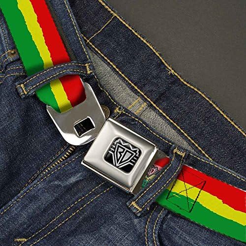 Buckle-Down Seatbelt Belt – Rasta Stripes Painted Green/Yellow/Red – 1.0″ Wide – 20-36 Inches in Length