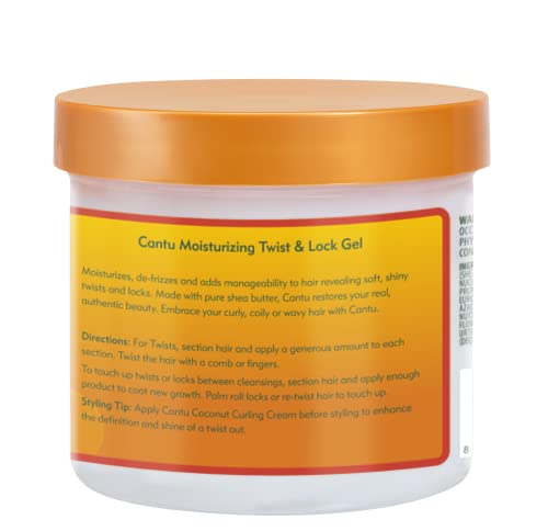 Cantu Shea Butter for Natural hair moisturizing twist and lock hair gel, for natural hair, Controls frizz for a silky smooth hold, no sulfates, silicones, parabens or mineral oil moisturizes, de-frizzes and adds manageability to hair revealing soft, shiny twists and locks, keeps frizz under control for a silky smooth hold.