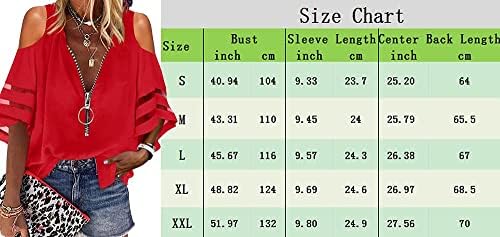 Features: Half Mesh Bell Flare Sleeve or Cold Shoulder Blouse,Zipper Design Casual Top,deep V- Neck. It Is Perfect for Summer, Spring and Fall.