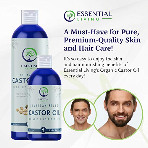 Essential Living: Organic Black Jamaican Castor Oil – For Skin Care, Eyelash, Beard and Hair Growth – 4 oz. – Rich in Vitamin E and Omega Fatty Acids for Deep Nourishment and Shine – Made in the USA