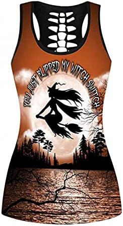 Fankle Womens Halloween Pumpkin Skull Hollow Tank Top, Women Sexy 3D Vest Girls Slim Leggings Clothes, Active Wear Gym Suit