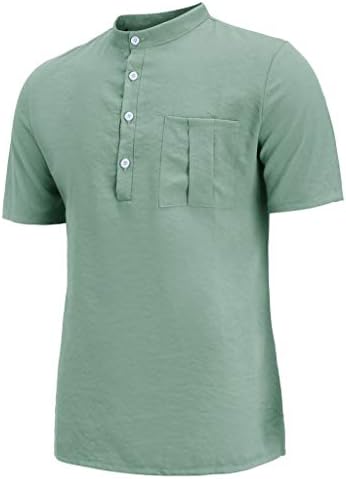 Holzkary Men’s Fashion Linen Henry Collar Short Sleeve/Long Sleeve Shirt Tops
