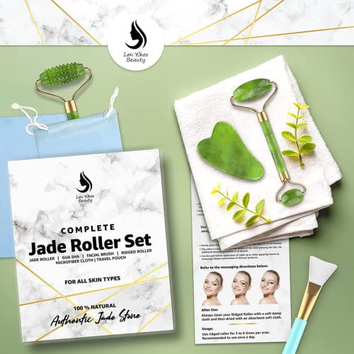 COMPLETE GIFT: Get the best experience using our jade roller gua sha set 4 in 1. It comes with the Jade roller, Gua sha, Ridged Roller & Silicone Makeup Brush. A perfect face massage tools for all.