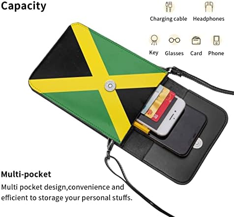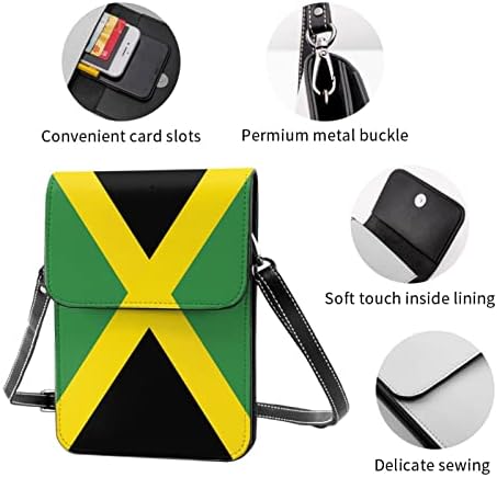 Jamaican Flag Ladies Crossbody Mobile Wallet-Pu Leather Handbag | With Adjustable Shoulder Strap