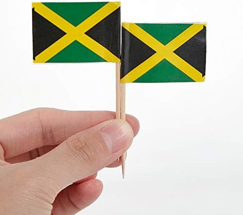 JAVD CYPS 100 Pcs Jamaica Flag Jamaican Toothpick Flags, Small Mini Stick Cupcake Toppers Jamaican Flags,Country Picks Party Decoration Celebration Cocktail Food Bar Cake Flags