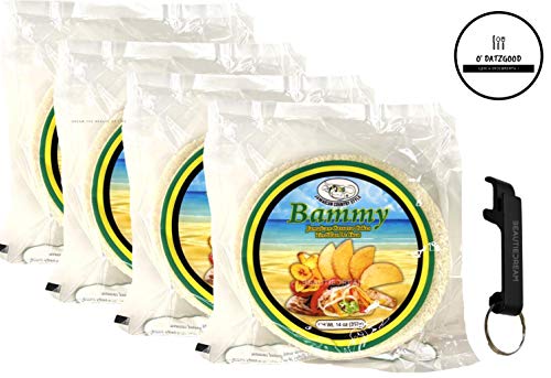 JCS Jamaican Bammy Cassava Cakes (Tortillas de Yuca) Pack of 8 cakes with Keychain Bottle Opener in Sealed O Datz Good Packaging (Pack of 4)