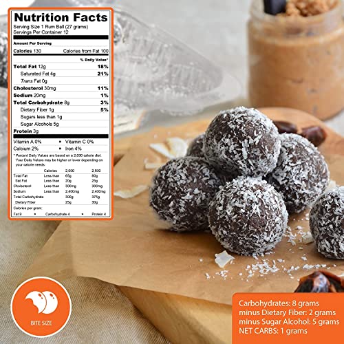 A YUMMY KETO-FRIENDLY SNACK FOR ALL DIFFERENT DIETS: These extra tasty rum balls can instantly spice up your Ketogenic diet without any ifs and buts. Kosher friendly and free of any guilty ingredients, these balls of deliciousness are ideal for weight loss, low-carb, low-sugar or any other restrictive diet. With 12 rum balls per pack, you will have plenty of flavorful snacks to savor.