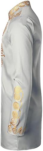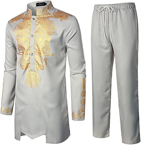 LucMatton Men’s African 2 Piece Set Long Sleeve Gold Print Dashiki and Pants Outfit Traditional Suit