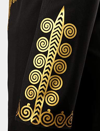 LucMatton Men’s African Traditional Dashiki Luxury Metallic Gold Printed Mid Long Wedding Shirt