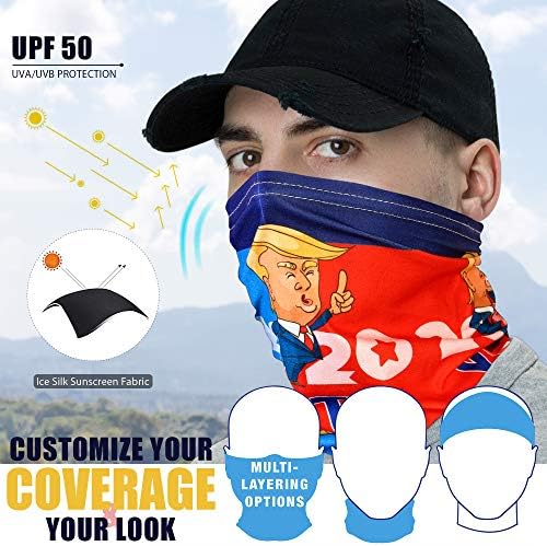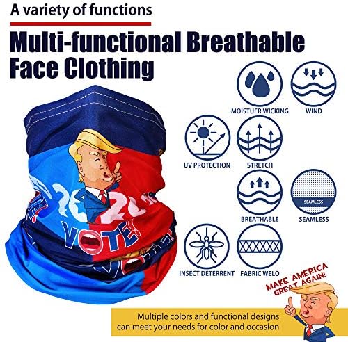 Neck Gaiter Face Macks Cover Bandana Women & Men Cloth Covering Shield Washable Reusable Breathable Scarf Headwear Balaclava (Trump Mask)