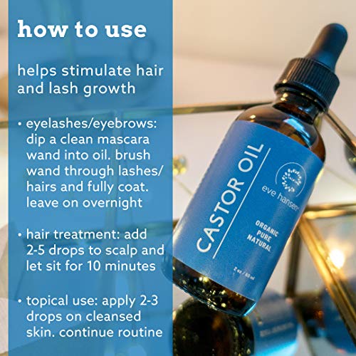 Organic Castor Oil USDA Certified | Pure Carrier Oil for Eyelashes, Eyebrows, Hair, and Skin with Applicator by Eve Hansen (2oz)