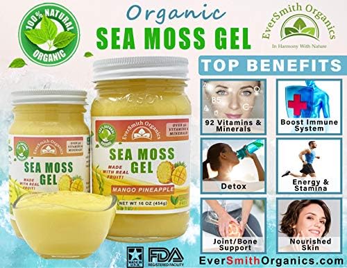 Organic Sea Moss Gel (8 Flavors) – 16 Ounce – Real Fruit – Wildcrafted Sea Moss (Raspberry, Pineapple Mango, Strawberry, Lemon, Apple Cinnamon, Berry Mix, Elderberry)