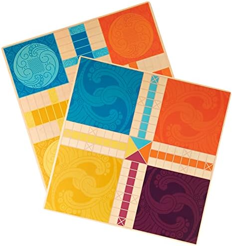 This classic game two-pack pays homage to Pachisi’s hisotry with colorful animal pawns, traditional cowrie shell pieces, and a vibrant, double-sided wooden game board.