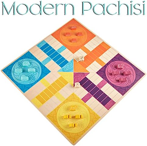 Pachisi: India’s Game of Twenty-Five – Features 2-in-1 Modern and Traditional Rulesets – Double-Sided Board Game with Colorful Animal Pawns and Wooden Cowrie Shell – Family Game Night for 2-4 Players