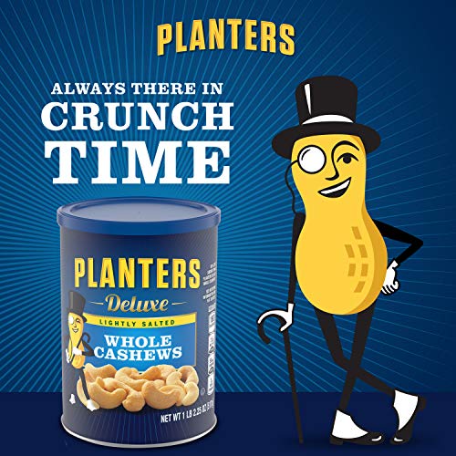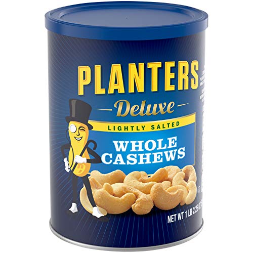 PLANTERS Deluxe Lightly Salted Whole Cashews, 1lb 2.25oz . Resealable Canister – Lightly Salted Cashews & Lightly Salted Nuts – Nutrient Dense Snacks for Adults & Kids – Vegan Snacks, Kosher