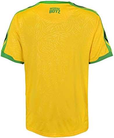 Umbro Mens Jamaica 18/19 Home Soccer Jersey – Yellow – Features a striking taping design on the sleeves inspired by the iconic Jamaican flag, also has a subtle graphic on the main body inspired by the palm trees that line the Jamaican coastline.