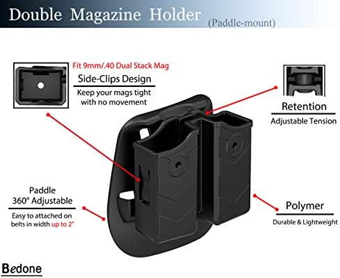 Universal Double Magazine Holder, Double Magazine Holster Fits 9mm/.40/45 Dual Stack Mags, Belt Carry OWB Paddle Mag Pouch for Glock/S&W/Sig Sauer/H&K/Ruger/CZ/Taurus/Beretta/Browning/Colt/Walther