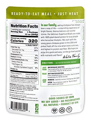 ENERGY-ENHANCING ALL-IN-ONE MEAL: Our meal in a pouches harness the nourishing power of one of the earth’s most incredible superfoods including Vana’s green chickpea. Our non-GMO, USA-grown chickpeas are picked fresh off the vine in their optimal state, which means they’re still green and brimming with protein, fiber, vitamins, and minerals
