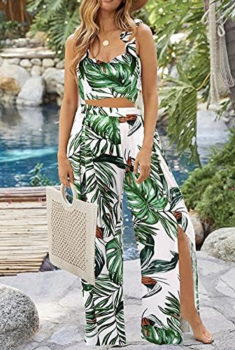 Unique Design for Summer Pants Suit- This summer boho 2 piece jumpsuit is cast in floral pattern with a flirty front split hem with spaghetti strap crop top, smocked back to ensure the relaxed fit. Channel bohemian edge in this two piece beach outfits