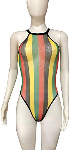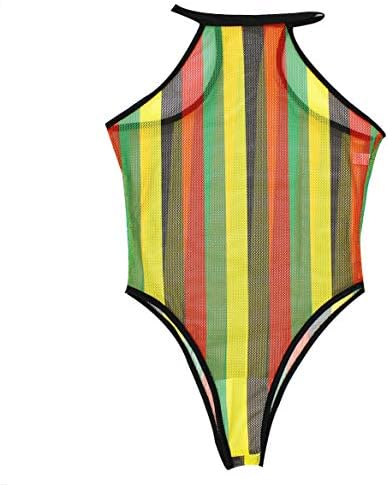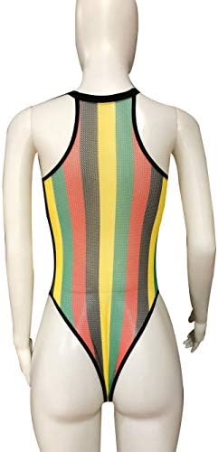 SEXY STYLE: The mini fishnet bodysuit will turn heads and make you a hit at your next party! Features rainbow color stripes and super stretchy, make your body slimmer.
