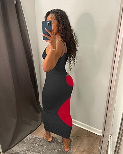 【Features】 Women’s patchwork color block Sexy Bodycon Dress. V neck, sleeveless, color block patchwork. Sexy ruched bodycon midi length dress will hugs your curves perfectly. Great fabric, casual dress, Elegant long dress looks feminine and attractive.