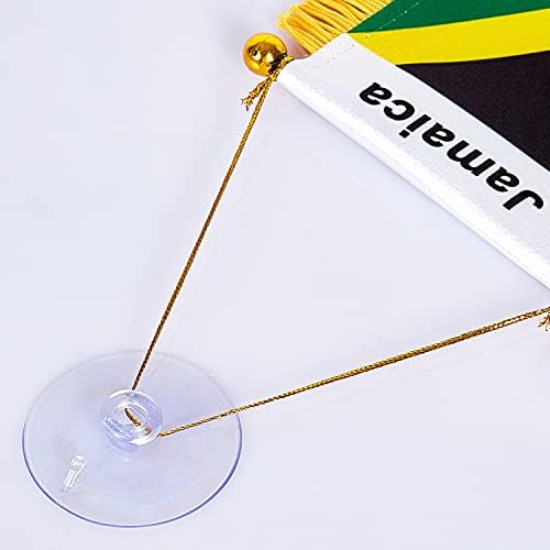 ZXvZYT 3 X 5 Inch Jamaica Window Hanging Flag Jamaican Small Mini Car Flags Banners Rearview Mirror Decoration – with Suction Cup & Golden Fringy Banner(2 Pack)