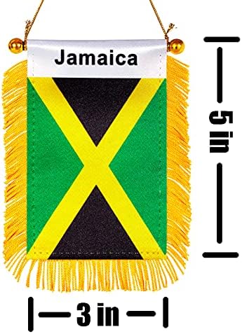 “ZXvZYT 3 X 5 Inch Jamaica Window Hanging Flag Jamaica Small Mini Car Flags Banners Rearview Mirror Decoration – with Suction Cup & Golden Fringy Banner(2 Pack)